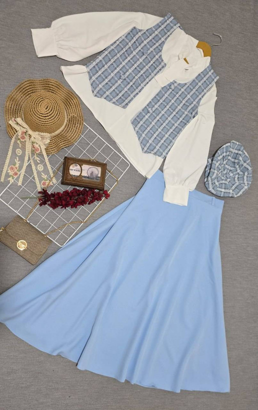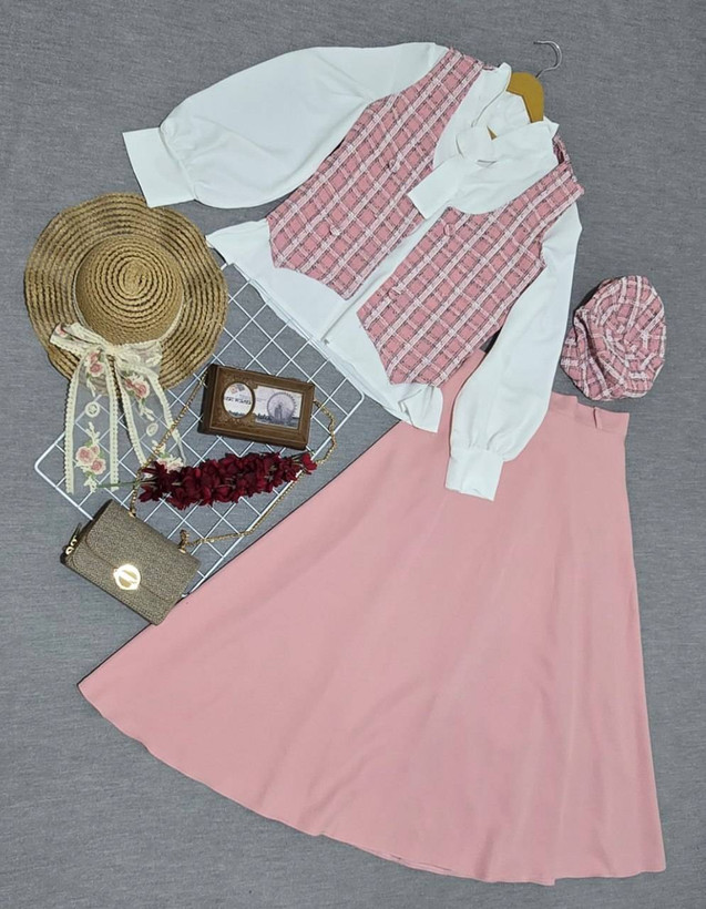 💢شومیز+کلاه+جلیقه+دامن💢