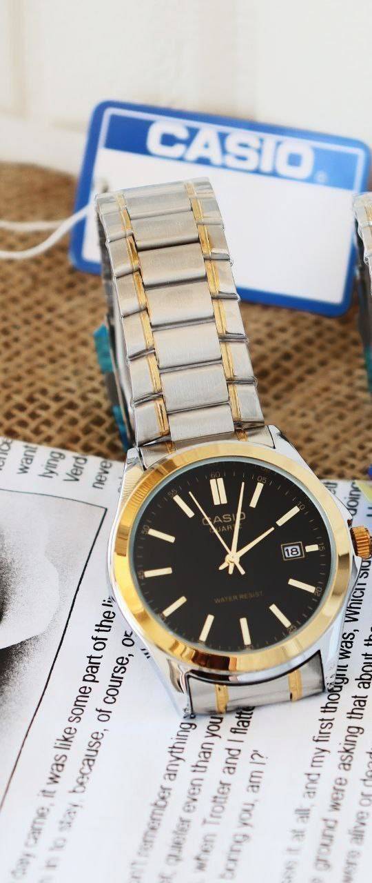 👚نام : ساعت کاسیو بنداستیل زنانه یا مردانه بصورت تک بند نقره ای طلایی صفحه مشکی